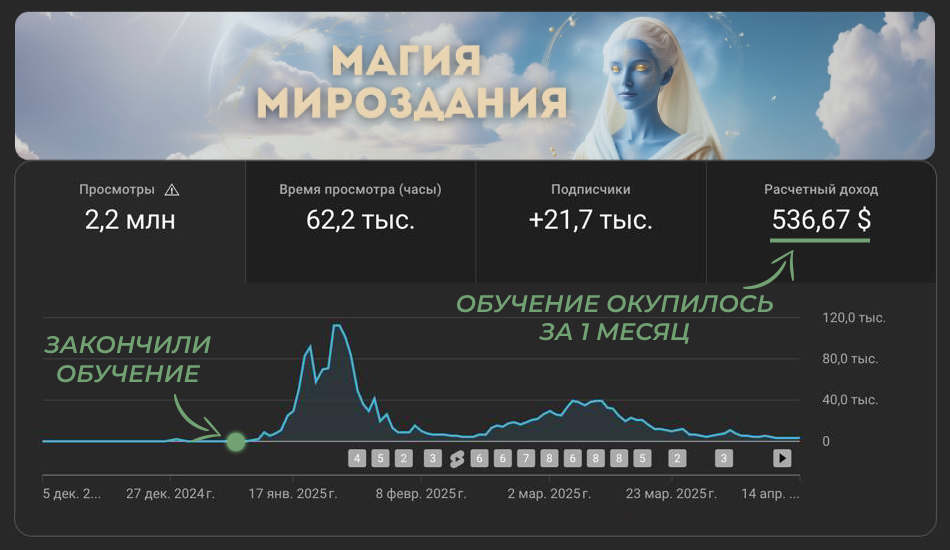 РЕЗУЛЬТАТПосле прохождения данного курса вы сможете создавать ролики в любой нише и с любым форматом. Вы узнаете о самой эффективной стратегии, которая позволяет набирать миллионы просмотров даже новичку. Обеспечите своему каналу лучший старт, обходя стороной все ошибки, которые допускают 90% новичков на YouTube